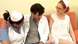 Busty towheaded doctor with glasses, Brigitta likes to feel warm cum all over her natural boobs