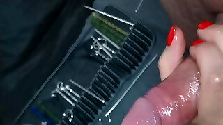Femdom Mistress Badkittyb Deep Urethral Sounding, Amazing Foot Wank, Cock Insertion, Gigantic Cumshot