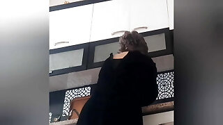 Busty mature cougar maid clean in mini dress - Mini Skirt - BBW SSBBW cleaning lady flashing big bootie close up underpants to the side