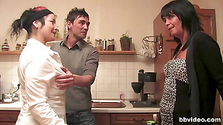 Curvy Brunette Kitchen-maid Agrees To Demonstrate Her Gigantic Globes To a Stranger & Fuck With Him For Money