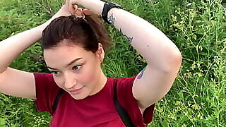 public outdoor fellatio with internal ejaculation from shy girl in the bushes - Olivia Moore