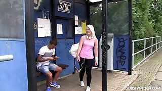Brazenly fucked at the bus stop! Everyone could watch it! I love public hook-up! Cum full of me!