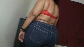 Mummy-in-law nails her hairy pussy with her fingers and gets cum on her gorgeous fat ass at home