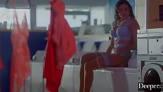 Fabulous Lukerya drinks coffee on the washing machine and flirts hotly, changing clothes in front of admirers.