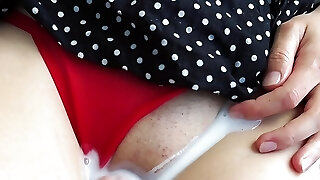 Point Of View stepdad teasing masturbate and rubbing shaved horny cooch schoolgirl closeup . cumshot and creampie orgasm