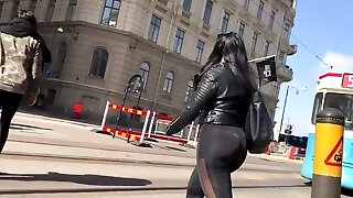 Magnificent and busty super hot brunette babe with a jacket and nothing underneat no bra no panties shows her pussy and naked ass