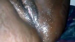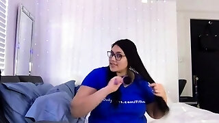 Humungous shy dark-haired girl with massive hairy pussy has missionary and cowgirl sex ending in a creampie on her bed