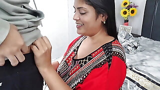 Slutty wife enjoys her paramour's huge cock and shows him her wooly pussy and ends up sucking cock