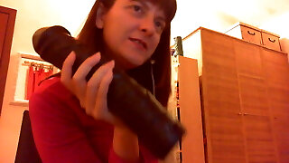 sexy mistress femdom blowjob - gargling my victim's fat cock & licking his nutsack. My whip makes him moan in pleasure