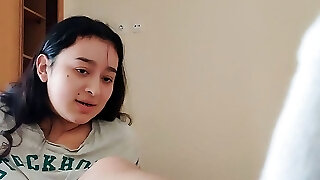 I Enter My Stepsister's Room She Gives Me Some Jiggly Blowjobs Until She Swallows My Cum -in Spanish