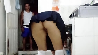 Tight Cheerleader gets fucked with a Big Ebony Belt Dick Dildo by her Hot Sexy College Classmate Hard for a Nice Orgasm